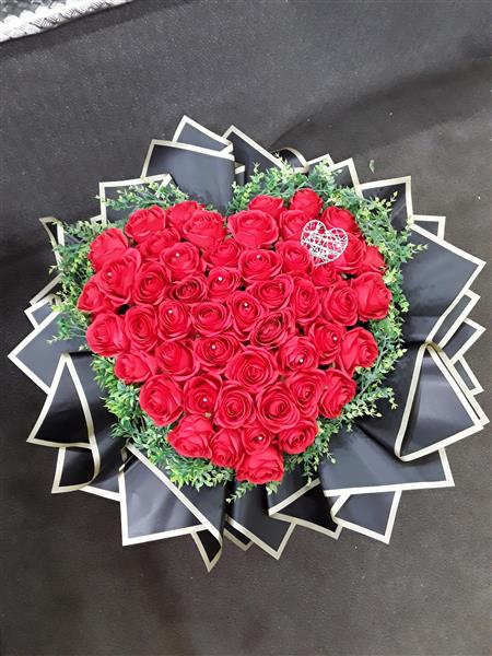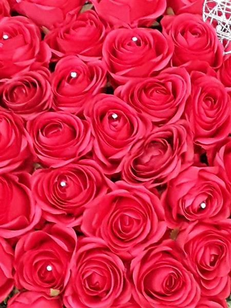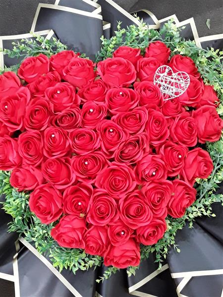 Artificial red rose heart bouquet